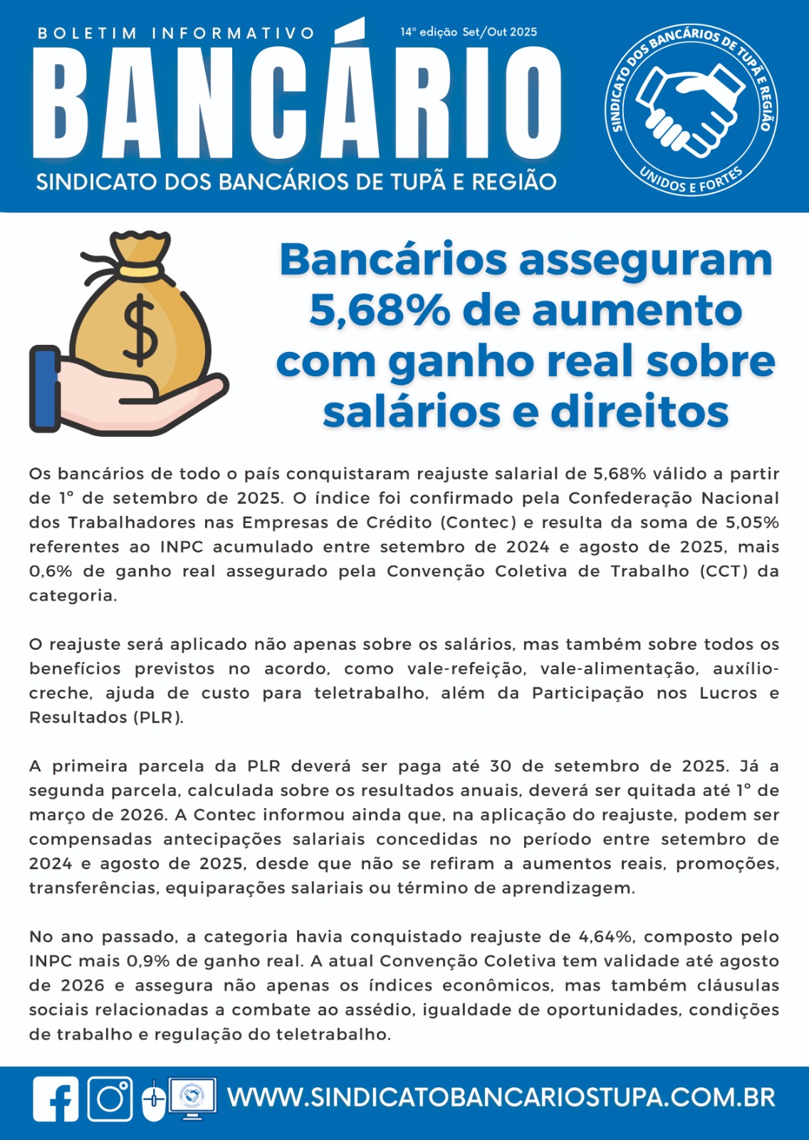 Edição destaca: Aumento salarial, Dia do Bancário, Pesquisa Nacional, entre outros assunto. Leia na íntegra!